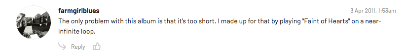 So I was all-in when Human Hearts came out; much to my delight and relief, it was worth the wait and, ultimately, a longtime mainstay in my car’s archaic-even-back-then six-disc changer. The whole album still holds up wonderfully for me but, even after all this time, “Faint of Hearts” remains that song I’m both eagerly waiting for and putting on repeat the most.